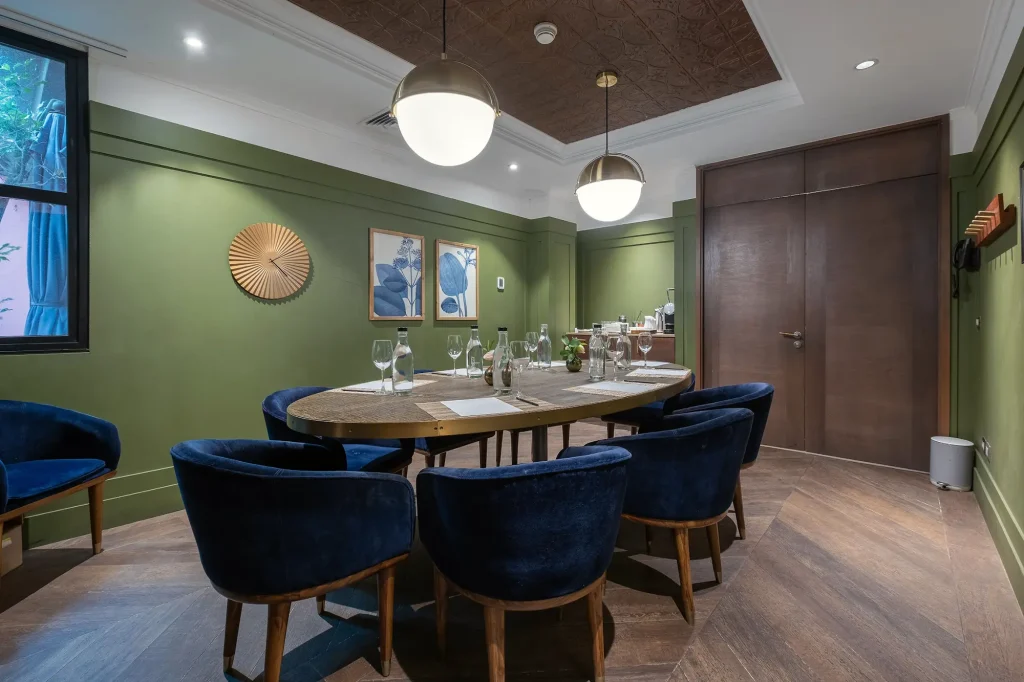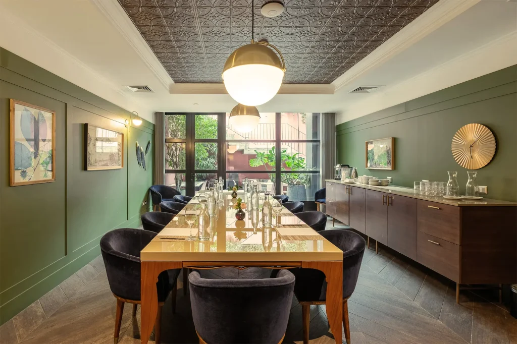 Este es un salón con mesa de directorio, posee luz natural y acceso a una terraza estilo patio inglés desde el salón.